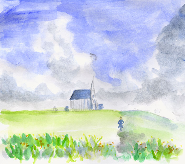 奥津国道の水彩画プロの裏ワザでまずはプロの模写とせっせと模写をした後、折角だからと小さくプロイセンとドイツを書き込んだ。